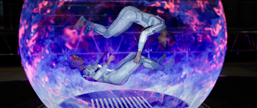 Split Fiction beginnt mit einem vermeintlich simplen, aber schnell eskalierenden Ausgangspunkt: Die bislang unveröffentlichten Autorinnen Mio Hudson und Zoe Foster werden vom dubiosen Start-up Rader Publishing eingeladen, an einer neuartigen Simulation teilzunehmen. Neuartig an dieser Simulation ist vor allem, dass sie bisher unveröffentlichte Ideen der Autorinnen virtuell zum Leben erweckt. Als Mio sich jedoch kurz vor Beginn gegen die Teilnahme an der Simulation entscheiden will, stößt der Geschäftsführer Rader sie in Zoes Simulation. Daher werden beide gleichzeitig in dieselbe, eigentlich nur für eine Person vorgesehene VR-Erzählwelt geschleudert (Abb. 1).