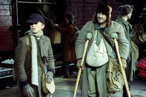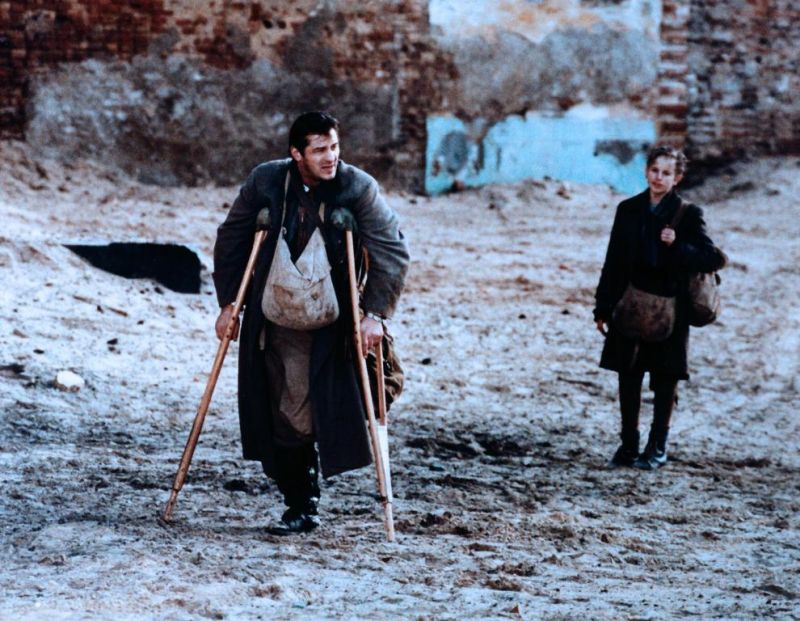 Kriege wirken lange nach. Wer den Krieg überlebt, der bleibt mit Verletzungen, Traumatisierungen und Verlusten zurück. Das Leben will wieder gelernt werden. Was es hieß, nach dem Zweiten Weltkrieg wieder bei Null anzufangen, daran erinnert Peter Härtling in seiner Romanvorlage zum Film Krücke, der viele autobiografische Bezüge enthält. Man muss sich zurechtfinden in Armut und einer zerrütteten Gesellschaft. Die Kamera von Gernot Roll folgt ganz der subjektiven Sicht des Protagonisten. Das Chaos der letzten Kriegstage erlebt man in Totalen mit Menschenmassen in Panik und direkt im Umschnitt auf die Sichtweise des Jungen mit kippenden Blickwinkeln in Detailaufnahmen. Auch im Rundgang durch die Ruinen der Stadt folgt der Zuschauende dem suchenden Blick des Jungen. Es entsteht ein sehr realistisches Bild der Trümmerlandschaften, die von kümmerlichen Gestalten bevölkert werden. Leider werden solche Momentaufnahmen zugekleistert von einer getragenen Musik mit leichten Jazzanklängen, die den Zuschauer auf eine sich anbahnende ungleiche Freundschaft einstimmen soll.