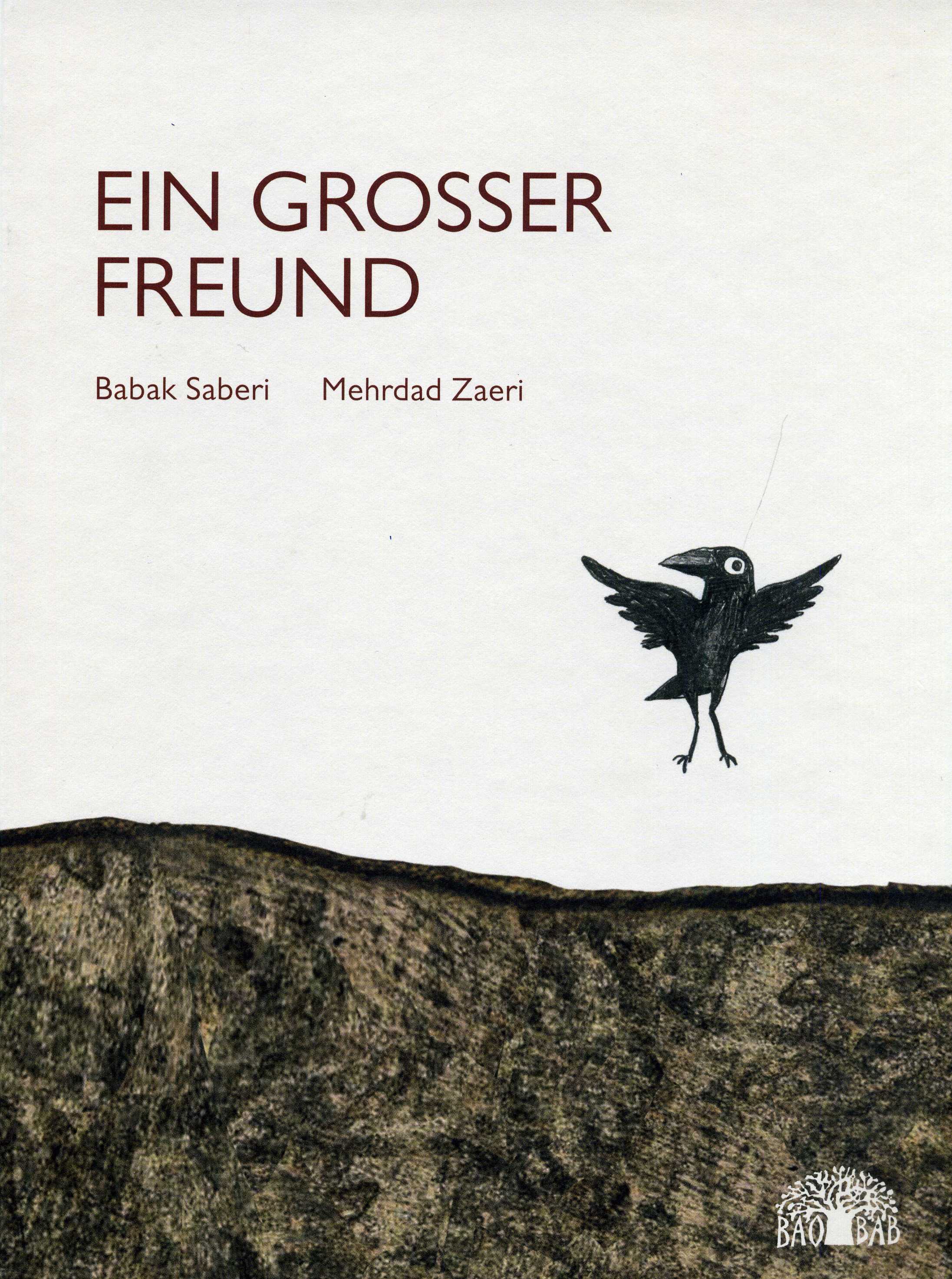"Ein großer Freund" erzählt in wenigen Sätzen und sehr reduzierten Bildern von der ungleichen Freundschaft eines Rabenmädchens zu einem Elefanten, die der Rabenmutter nicht gefällt. Wegen des Größenunterschiedes fürchtet sie um die Sicherheit ihrer Tochter. "Dabei gibt es eigentlich gar keine Größenunterschied," führte Saberi seine Idee weiter aus. "Die Liebe der beiden Freunde zueinander ist genau gleich groß – und letztlich kommt es eigentlich nur darauf an."