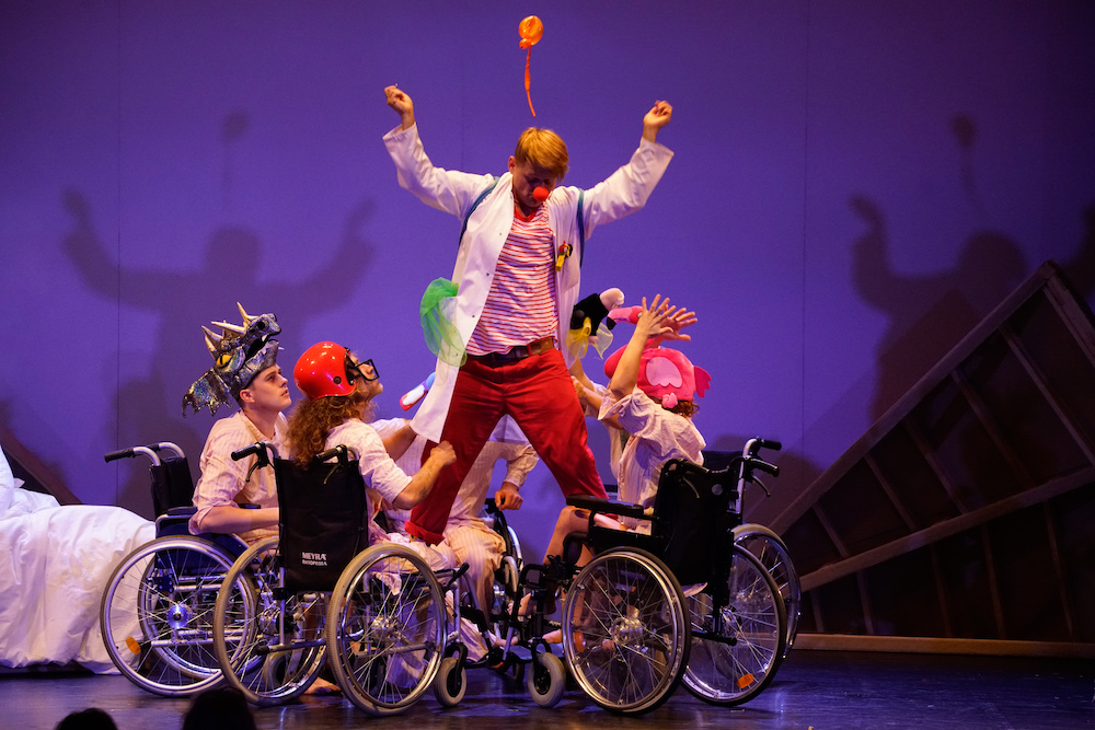 Die Krankenhausszenen sind teilweise inhaltlich verknüpft mit der Geschichte des kleinen Prinzen. Der Krankenhausclown (Denis Klopov) fertigt Luftballontiere an oder Greta (Guilia Reboldi) zieht einen Luftballon durch Nase und Mund. Es kommt zu einem Westernduell zwischen den Klinikclowns oder zu einer Spinning Balls-Einlage. Es gibt auch musikalische Beiträge, wie das mit dem Publikum interaktive Glockenläuten oder die Glasharfe (Denis Klopov). Passend zum Krankenhausthema werden Rollstuhl Choreografien gezeigt. In der letzten Szene im Krankenhaus stirbt Moritz, dabei weicht der Clown (Denis Klopov) nicht von seiner Seite. Mit einer letzten Performance von Tim Kriegler an den Strapaten endet das Stück. Es entsteht der Eindruck, dass Moritz sich im Himmel befindet.